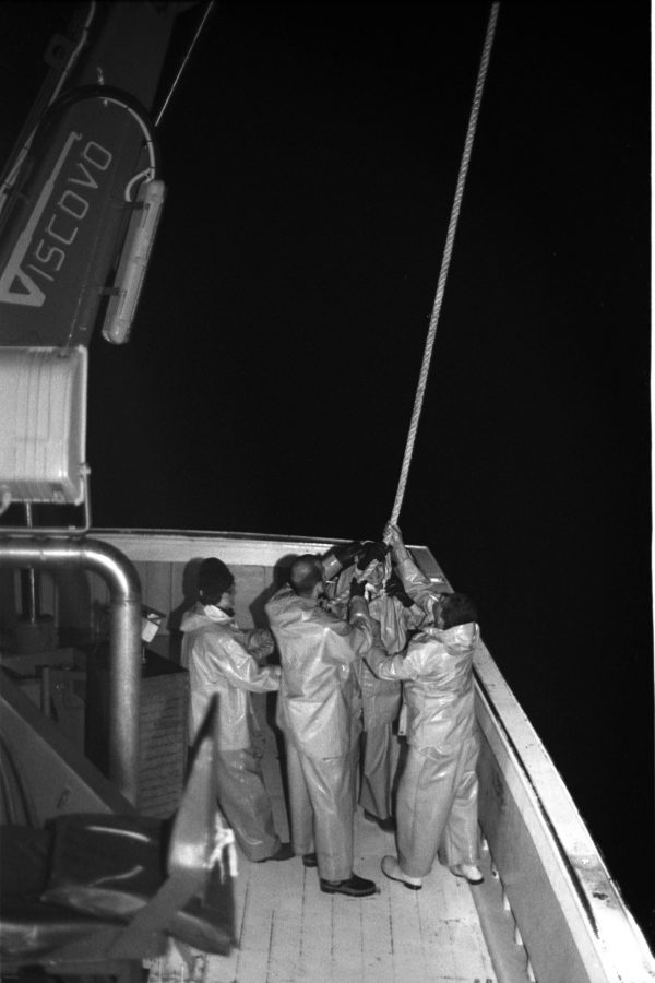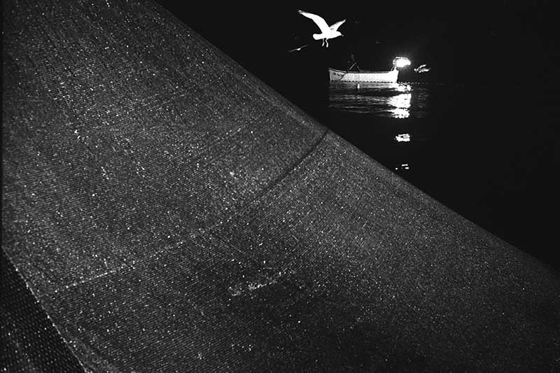 Luci a mare è una ricerca etnografica e un reportage. E’ una storia di uomini, mare e lavoro. Il progetto fotografico consiste in alcune centinaia di fotografie analogiche, scattate in pellicola bianconero e principalmente con l’uso di un obiettivo 50 mm, limitando il più possibile l’uso del flash: una scelta artistica e stilistica che voleva mettere in evidenza lo stretto spazio di convivenza dentro la barca, la necessità di esprimere negli scatti i confini della composizione fotografica e la volontà di illuminare i fotogrammi notturni con le luci provenienti dalle lampare in mare o con fonti di luminosità presenti a bordo, in una visione il più possibile vicina allo sguardo percepito. Il reportage è stato esposto al MAN Museo d’Arte Contemporanea di Nuoro nel 2014, in corrispondenza di una retrospettiva dedicata a Robert Capa. (fotografie di Stefania Muresu)